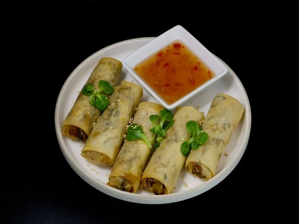 Sajgonki podawane z sweet chilli sosem wegetariańskie